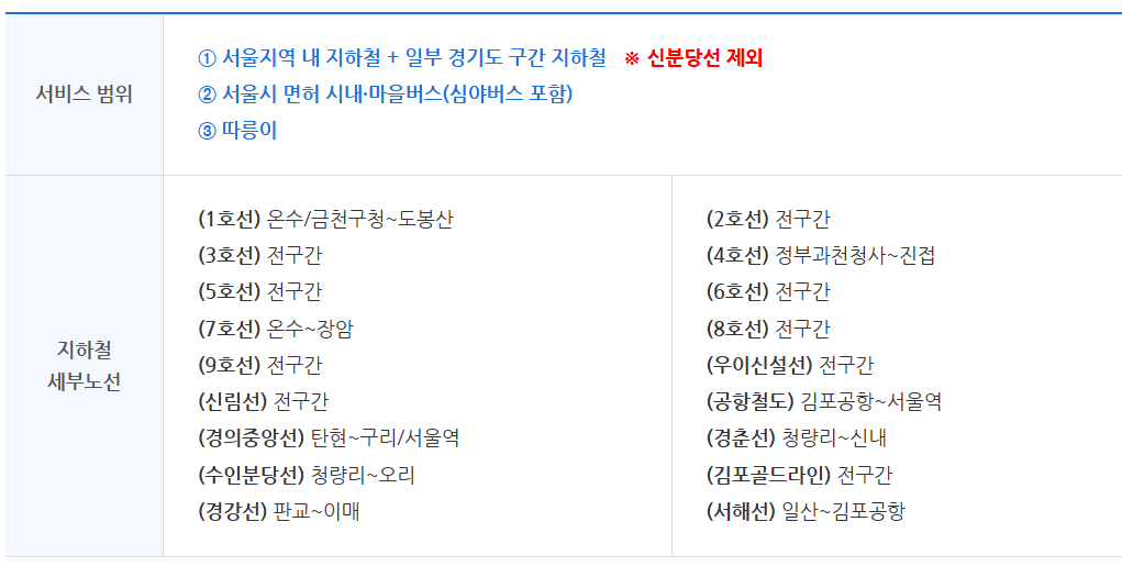 서울시뿐 아니라 김포, 남양주, 구리, 과천, 고양, 성남, 하남 등 경기도 일부 지역 주민도 동일하게 이용할 수 있다니