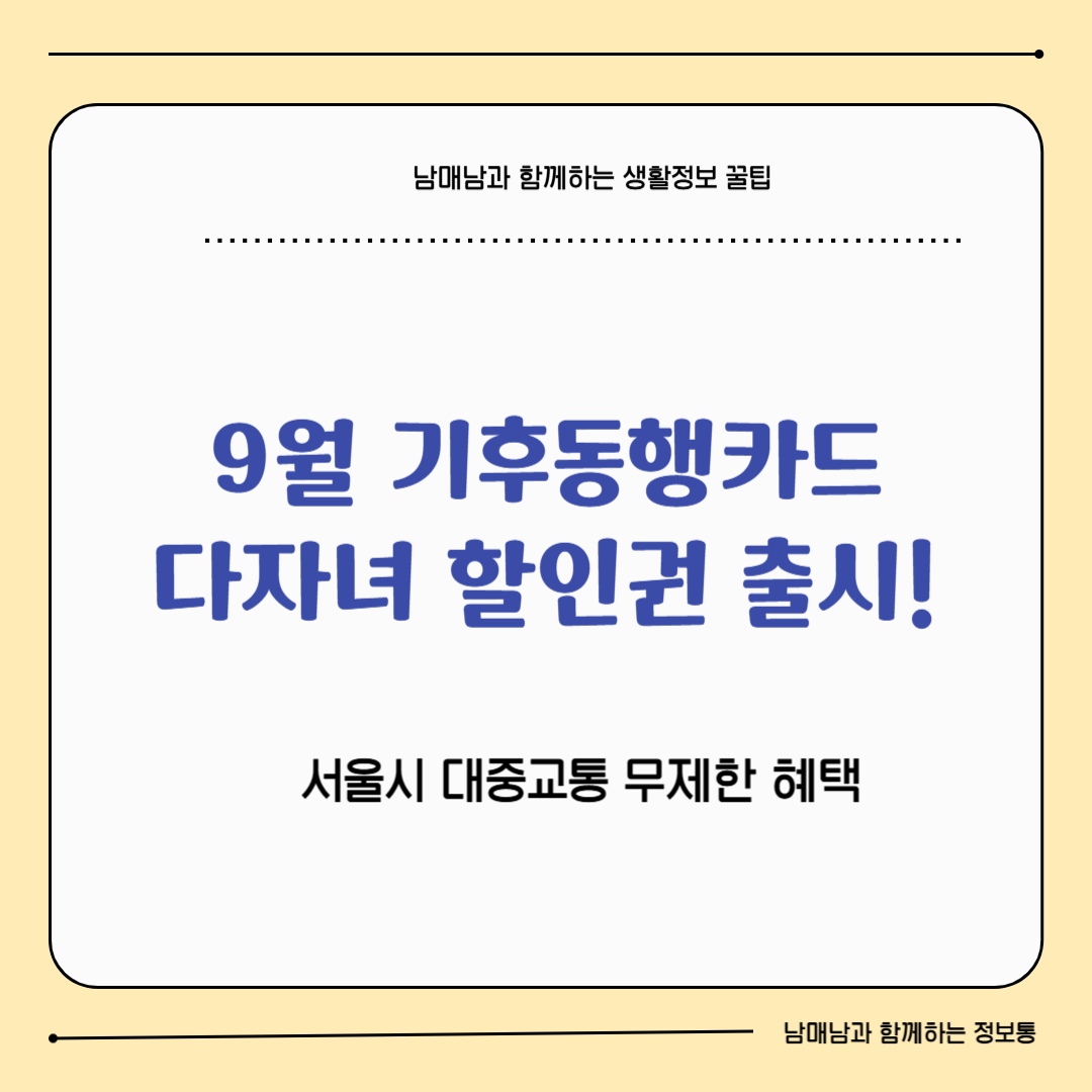 9월 기후동행카드 다자녀 할인권 출시! 무제한 혜택 알아보기