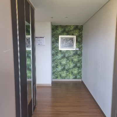 정면으로는 파릇 파릇 초록색 벽지에 액자가 놓여 있네요.