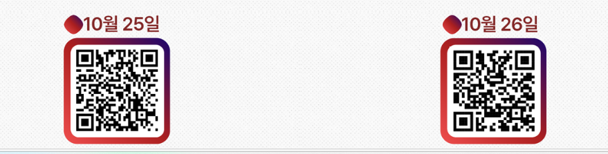 10/25, 10/26 일자별 큐알코드를 통해서 신청해 주세요