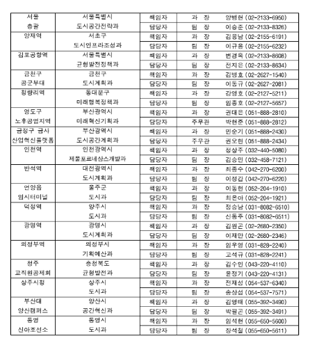 공간혁신구역 선도사업 후보지 16곳 담당자 안내