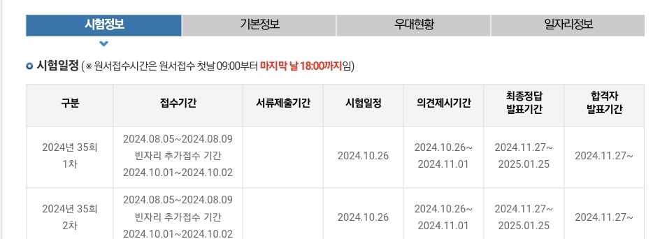 2024년 35회 1차, 2차 원서 접수는 24. 8.5~ 8.9일까지 접수를 할수 있는데요.