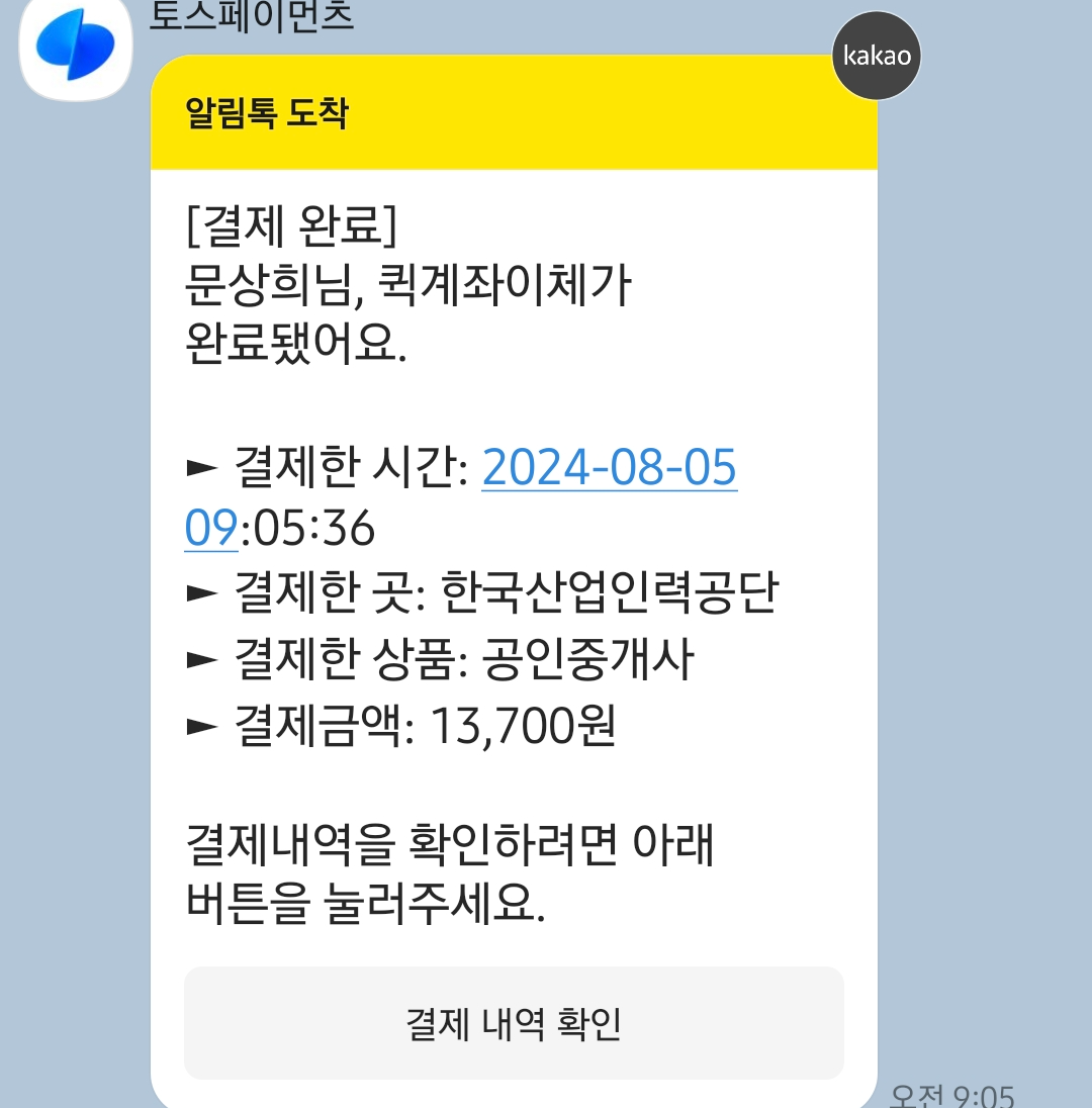 본인 절차 거치고 9시 5분에 무사히 결제 완료 했어요.