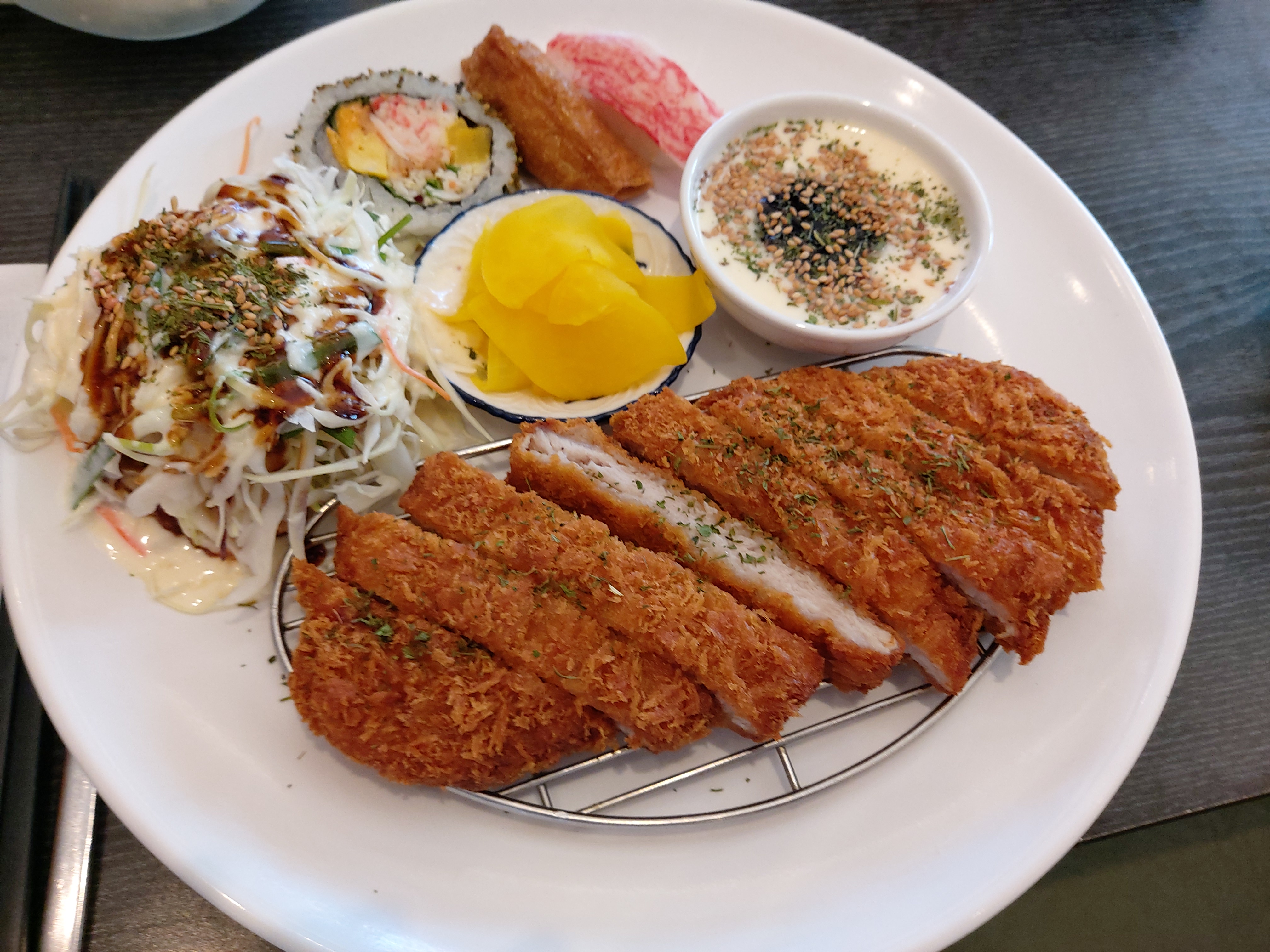 돈가스뿐만 아니라 롤, 유부초밥, 초밥, 상큼한 샐러드에 우동까지....