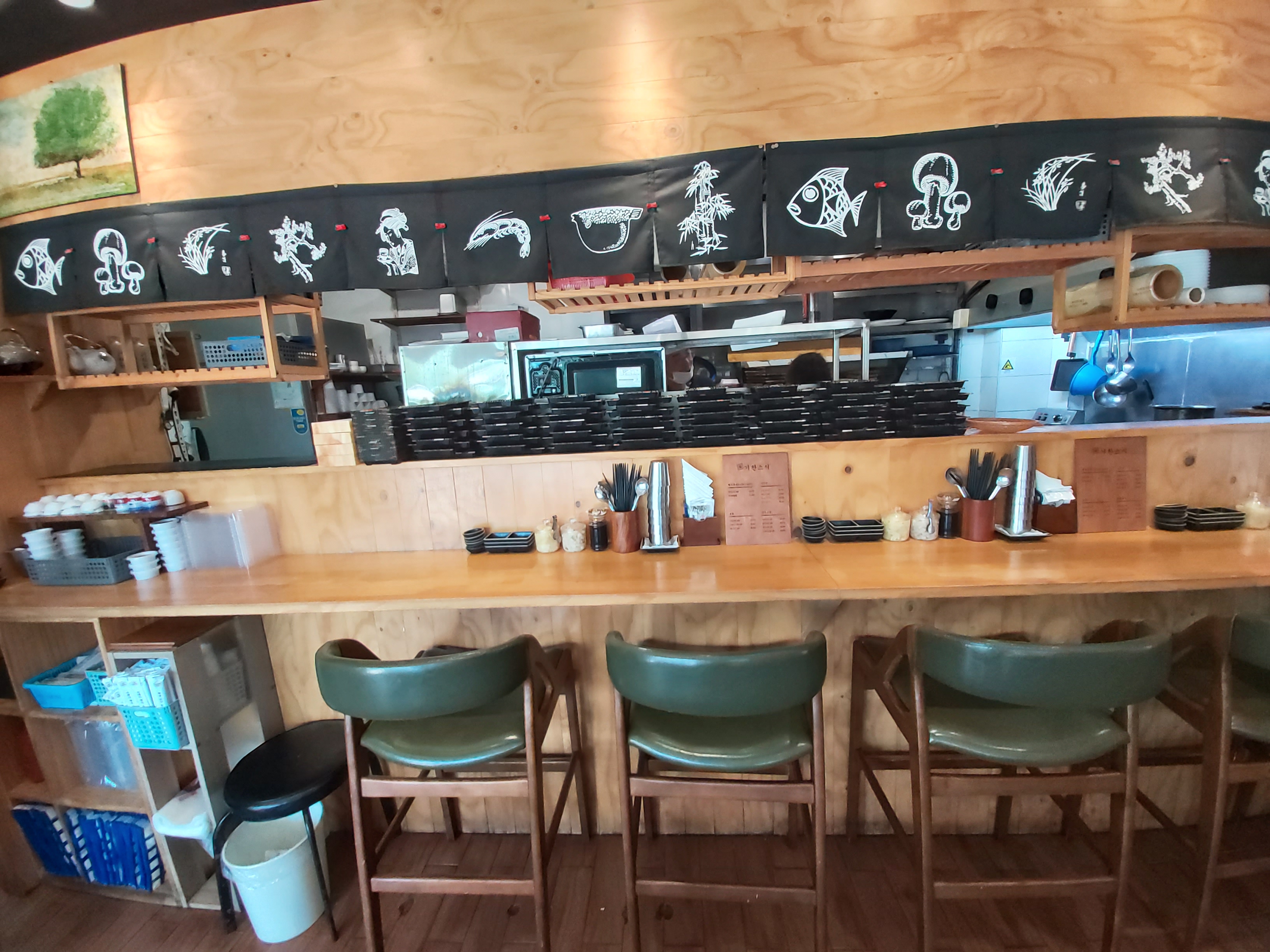 혼자먹을수 있는 주방앞 테이블과 4인석자리가 5테이블 정도 마련되어 있었어요