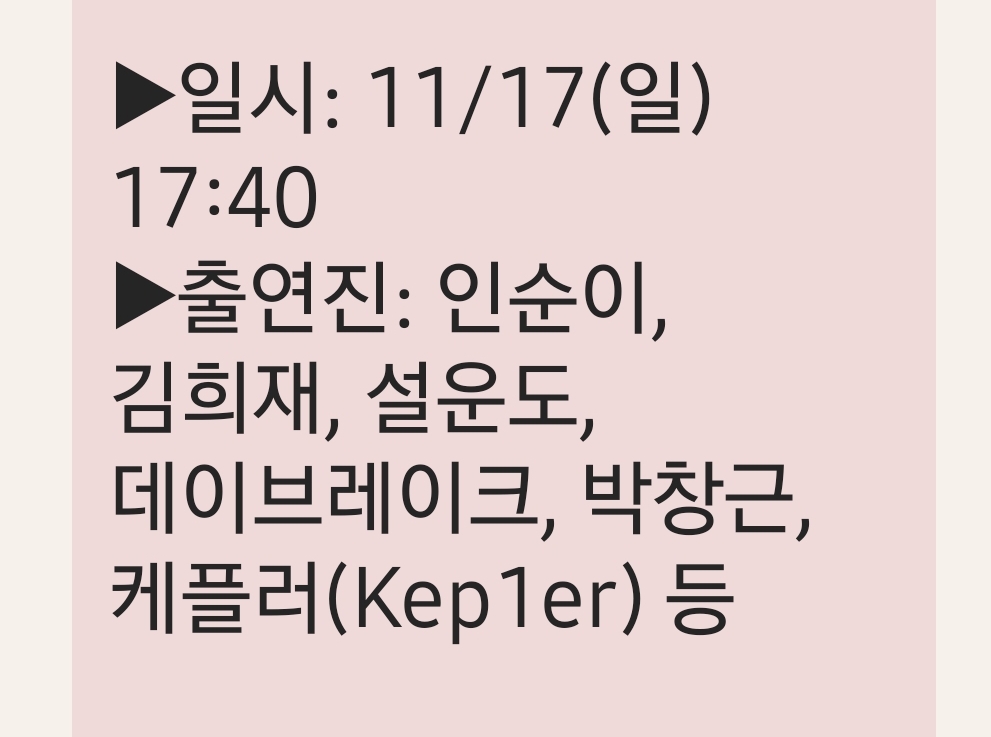 출연진은 인순이, 김희재, 설운도, 데이브레이크, 박창근, 케플러 등