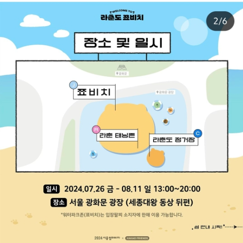 광화문 광장 2024 썸머비치 카카오프렌즈 라춘도 쪼비치 참여 이벤트 안내