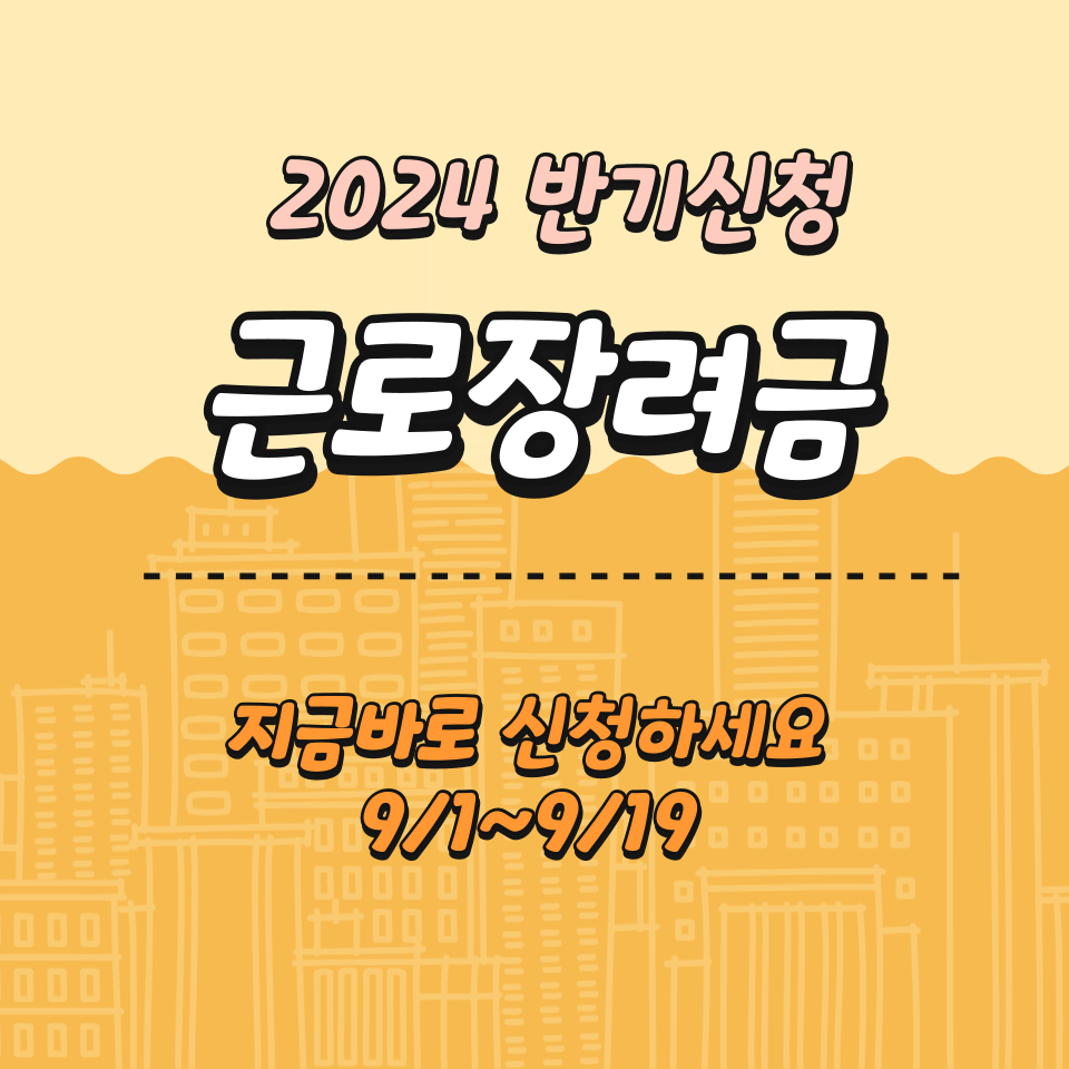 9/1일부터 24년 근로 장려금 하반기 신청기간으로 내용을 잘 확인해 주세요.