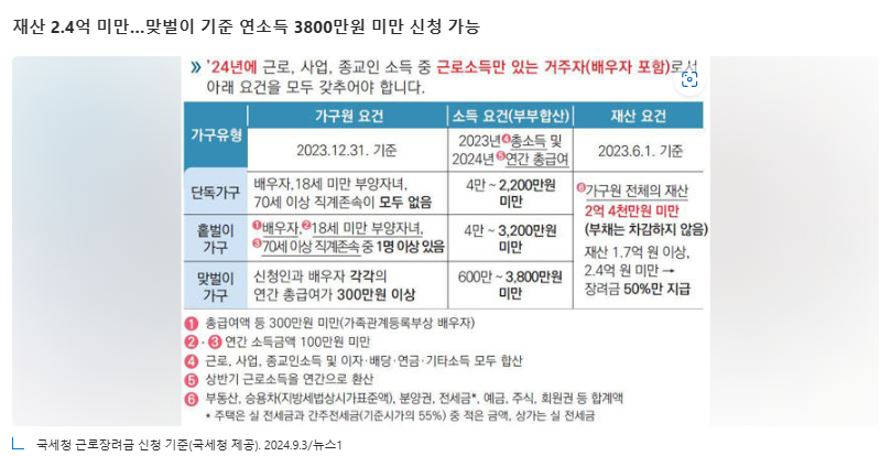 24년 근로장려금 반기 신청 시작( 9/1~9/19), 신청자격, 신청방법(+나도 자격일까? Q&A 20)