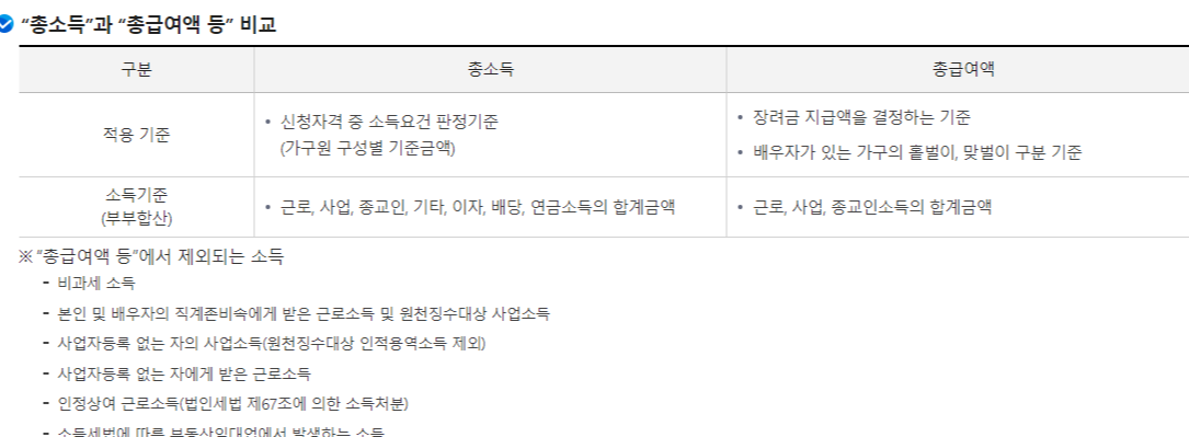 | 맞벌이 가구 | 거주자 및 배우자 각각의 '총 급여액' 등이 300만원 이상이 가구 |