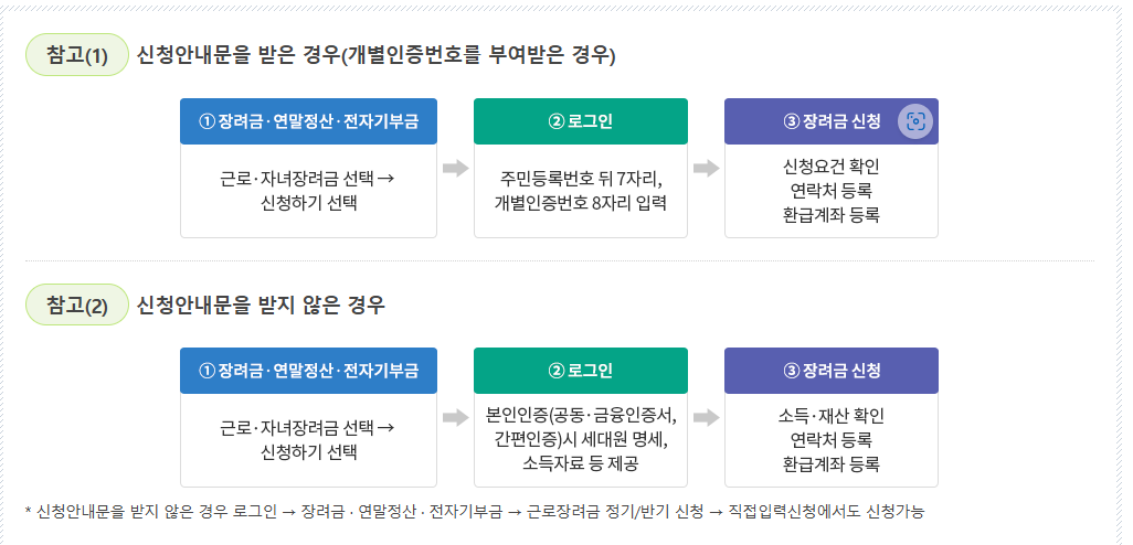 60세 이상 고령자 및 중증장애인이 장려금 신청기간에 동의하면 향후 2년내 신청안내 대상 포함시 자동으로 신청됩니다.