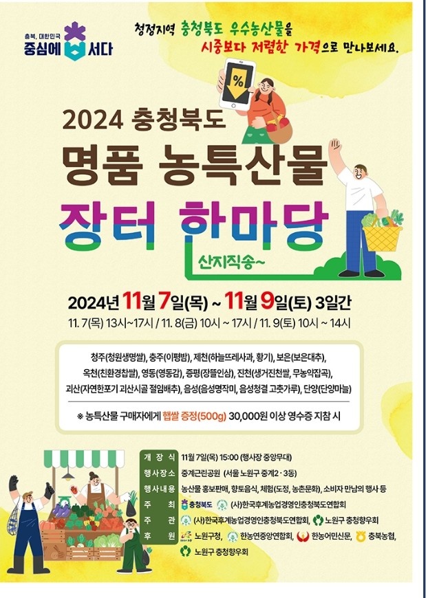 노원에서 열리는 2024 충북 명품 농특산물 직거래 장터 한마당(11.7~11.9)
