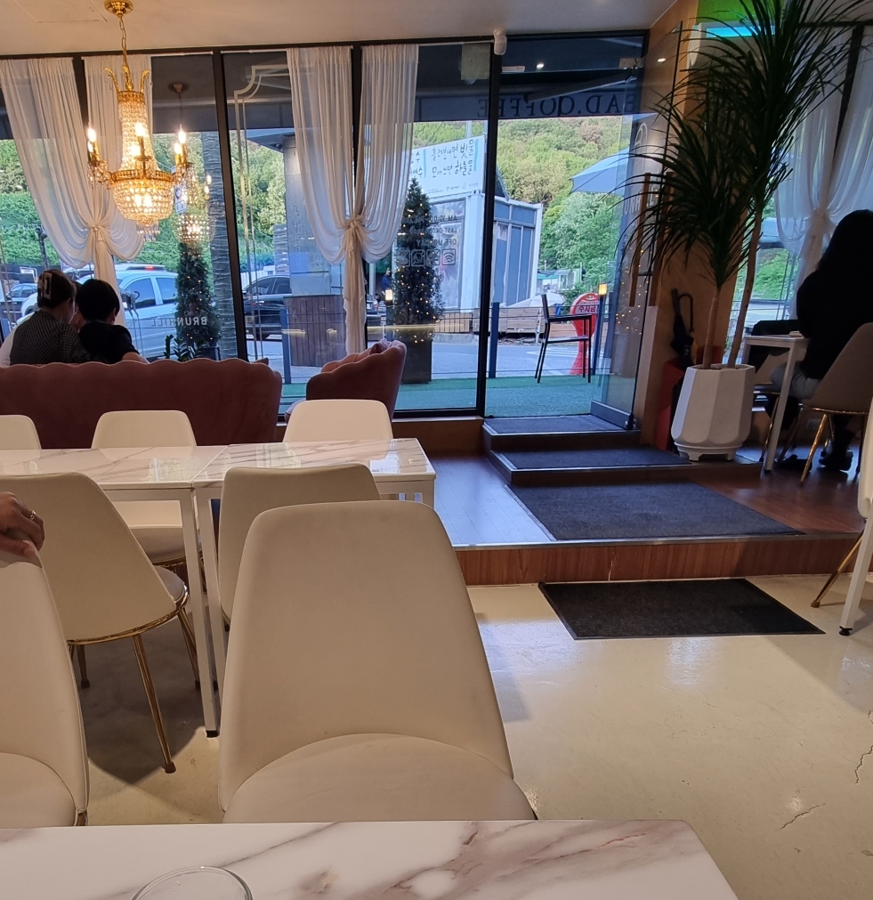 의자에 앉아서 포토존도 있고 나무 테이블이 놓여 있어서 날씨가 좋으면 바깥 풍경 보면서 차 한잔하면서 이야기 나누기도 좋았어요.
