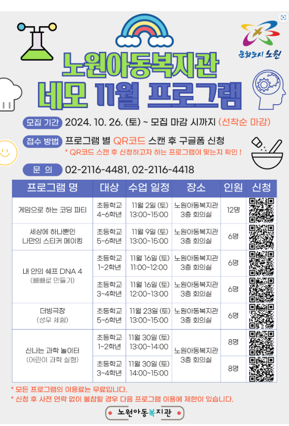 노원 아동복지관 네모 11월 무료 프로그램(코딩파티, 스티커메이킹, 빼빼로만들기 등)