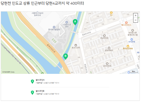 당현천 인도교 상류 인근부터 당현 4교까지 약 400미터 구간입니다.
