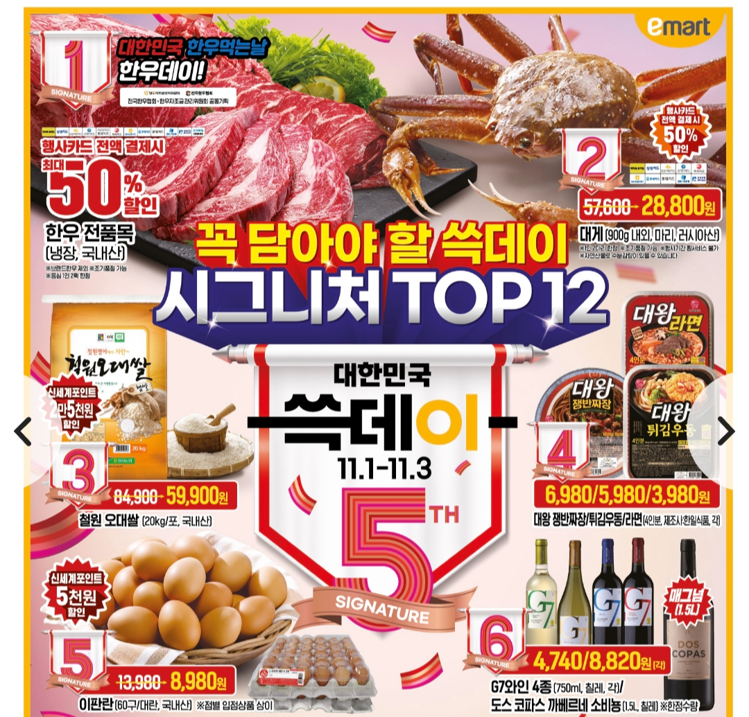 이마트 쓱데이 쓱뎀축제에 꼭 담아야 할 시그니처 TOP 12 물품과 가격을 소개해 드리려고 합니다.