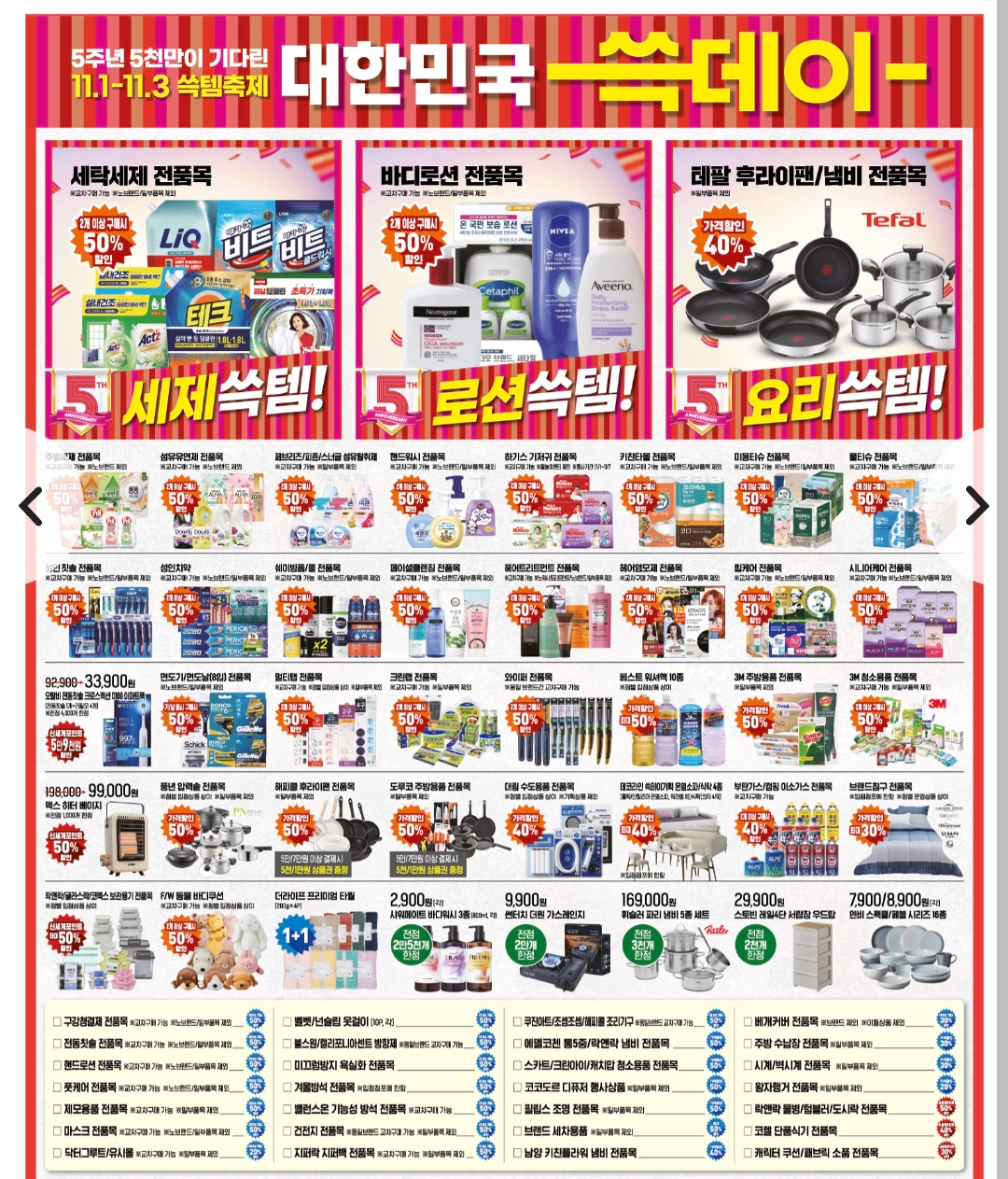 11.1~11.3(3일간) 최대 1+1 & 최대 50% 할인