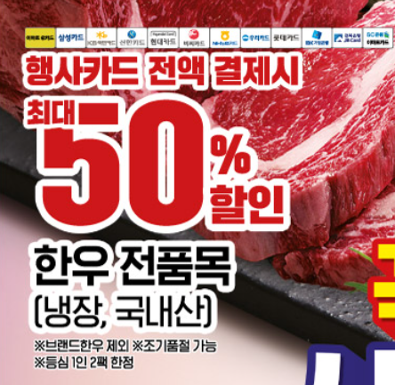 행사카드 결제시 최대 50%할인을 받을수 있어요.