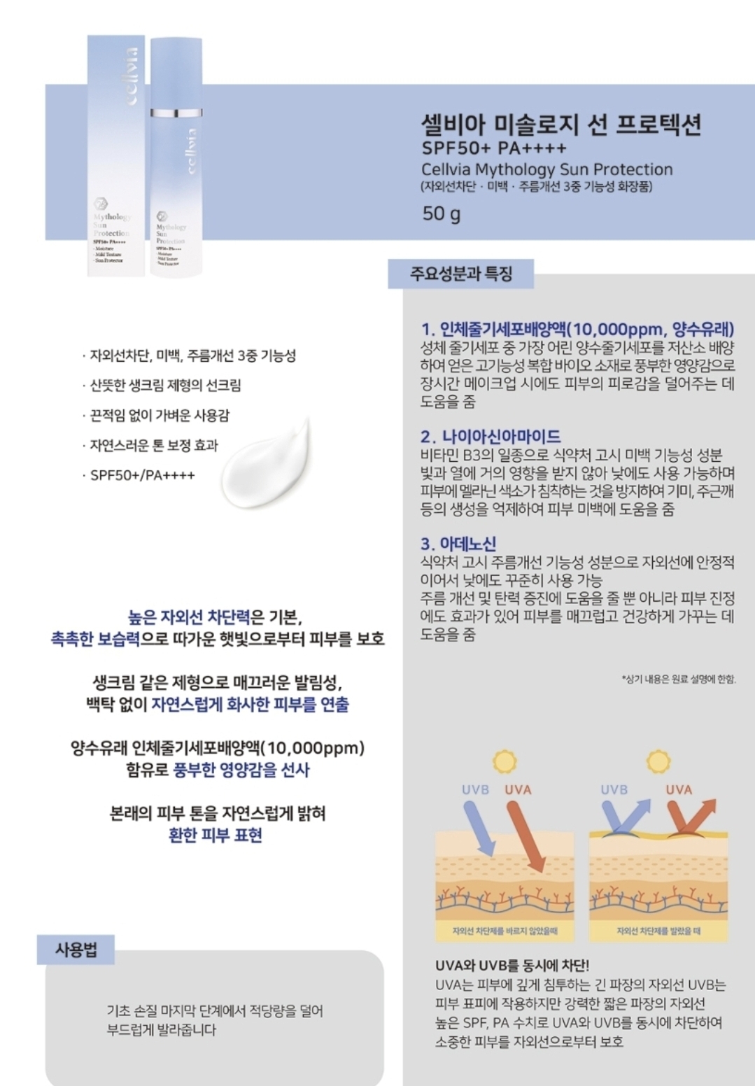 [ 자외선 선크림 추천] 민감피부용 ok 눈시림 , 백탁 NO 셀비아 미솔로지 선 프로텍션 SPF 50+(+인체양수줄기세포)