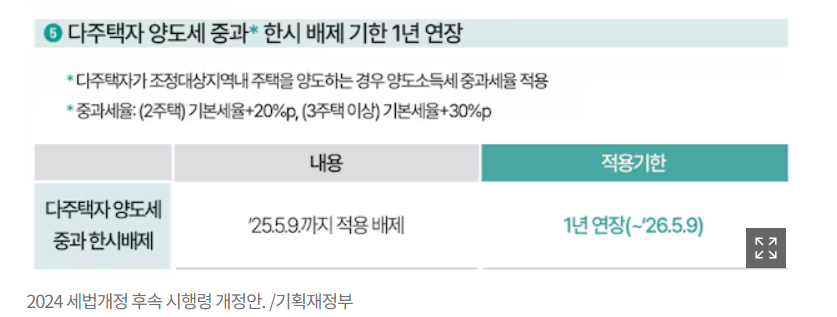 기획재정부가 16일 발표한 ‘2024년 개정세법 후속 시행령 개정안’에 따르면, 다주택자 양도세 중과 한시배제를 1년더 연장이 되었는데요