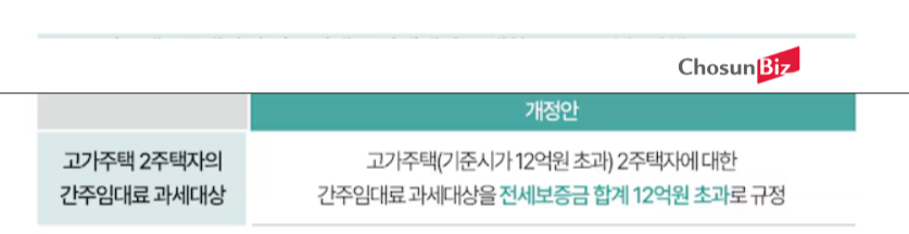 개정된 시행령에 따르면 2026년 1월 1일부터 기준시가 12억원 초과 2주택에 대한 간주임대료 과세대상을 전세보증금 합계 12억원 초과로 규정되었는데요