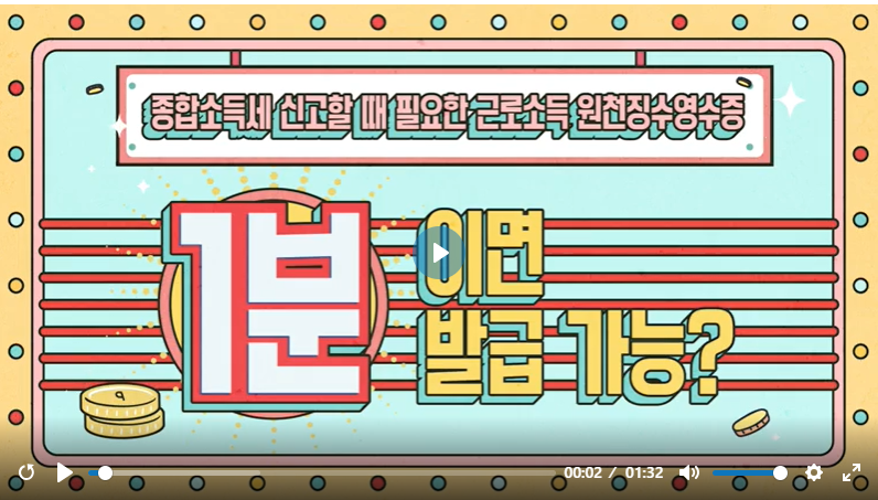 대한민국 정책브리핑 홈페이지에서 원천징수 발급하는 방법과 영상이 함께 안내되고 있는데요.
