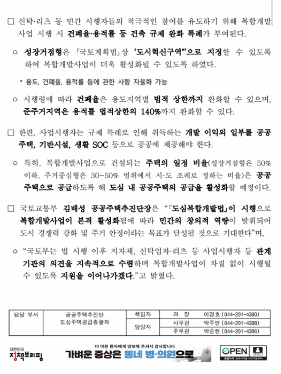 도심복합개발법 2월7일 시행 복합개발사업 보도자료