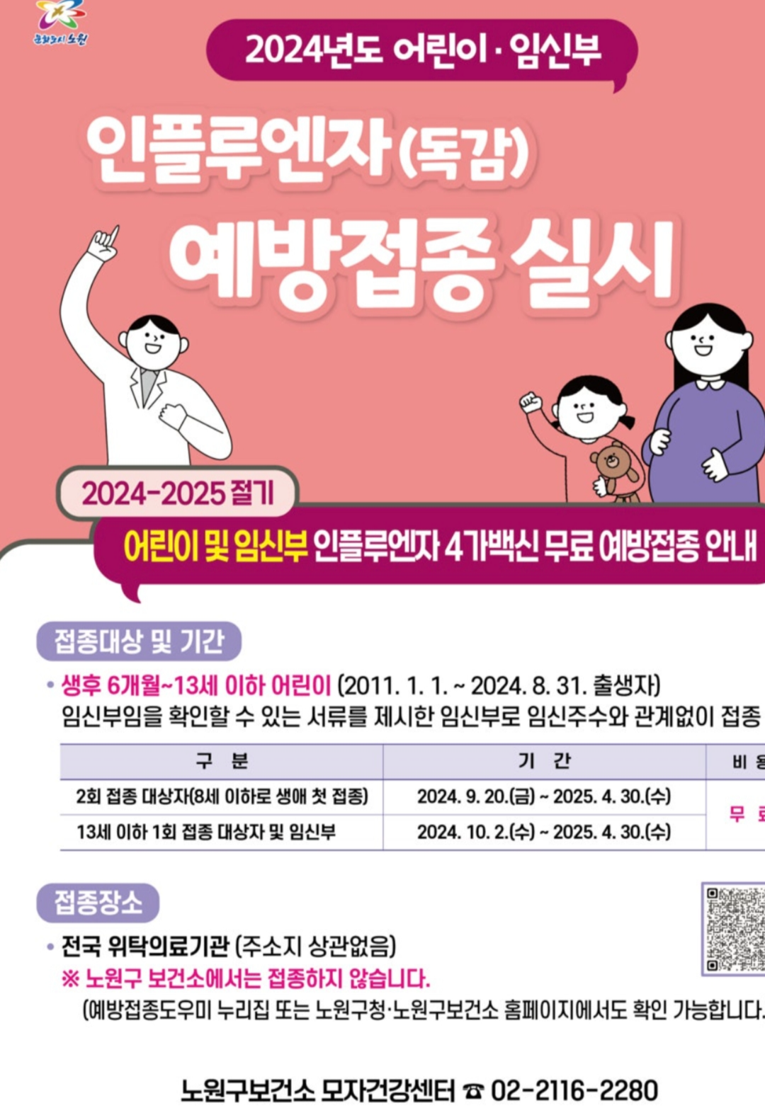 어린이 및 임산부 | 2회접종 대상자(8세이하로 생애 첫 접종) | 24. 9.20(금)~25. 4.30(수) | |