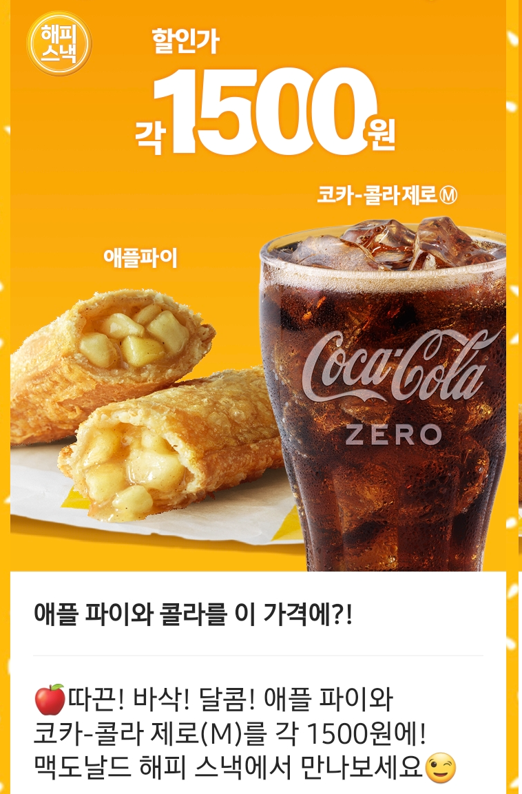 애플파이와 코카콜라 제로(M)는 각 1500원