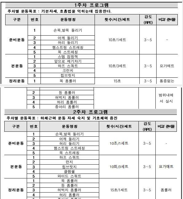 2. 동작센터 체력증진교실 프로그램 운영계획