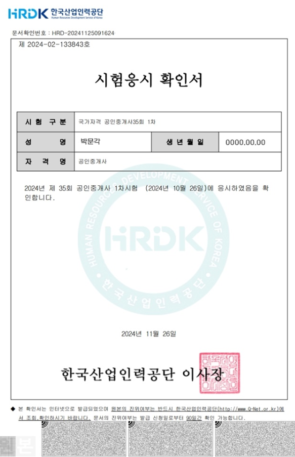 2025년 공인중개사 응시확인서 확인방법은
