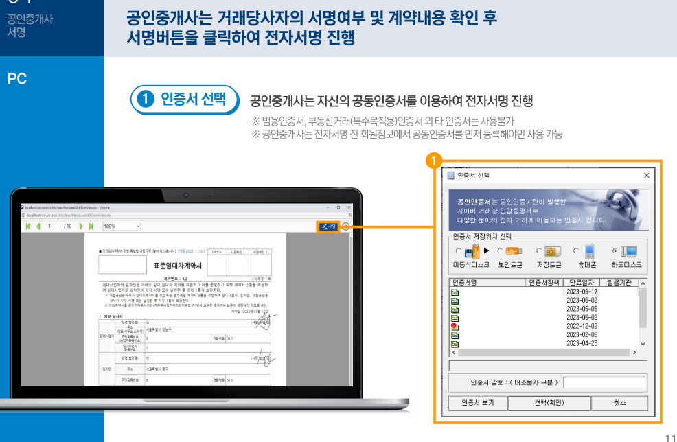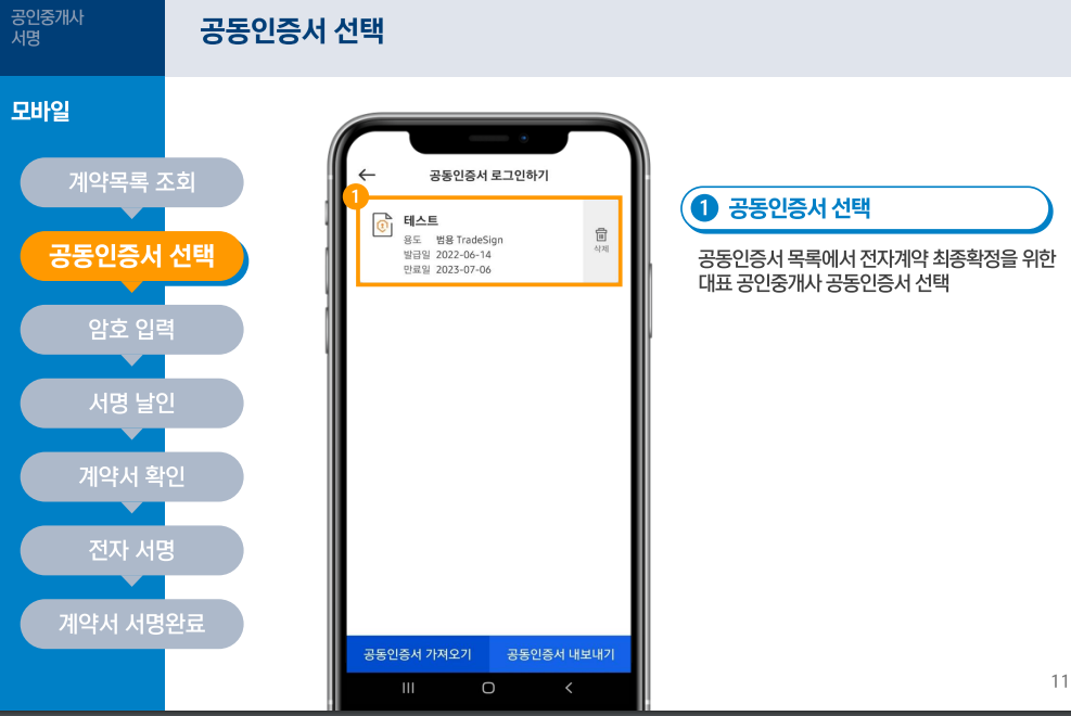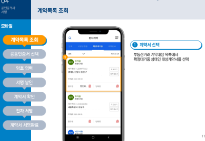 공동인증서 목록에서 전자계약 최종확정을 위한