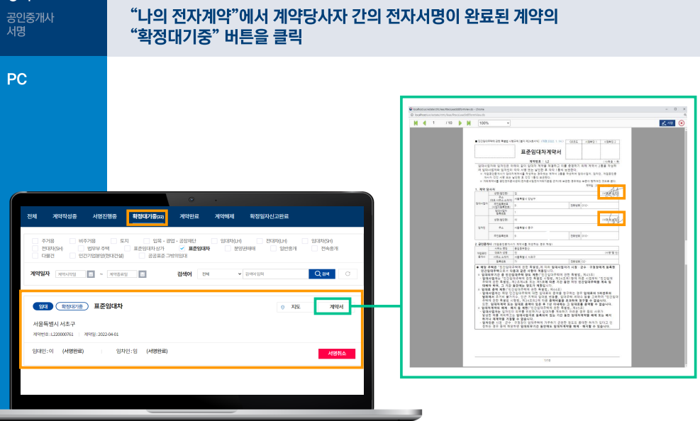 임대인 및 임차인이 전자서명이 완료된 후,