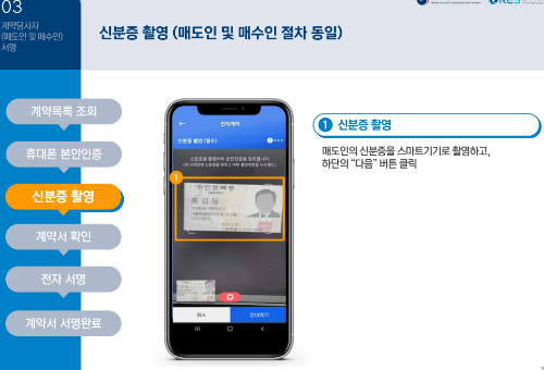 5. 신분증 촬영(매도인 및 매수인 절차 동일)을 합니다.