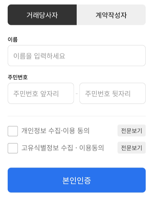 일반적으로서류상으로 진행할때는 각자 신분증 확인후 서명하고 진행이 빨랐는데 전자 계약서에서는 본인인증단계도 거쳐야 하고 개인정보 입력하는 것이 있어서 번거로움도 느꼈습니다.