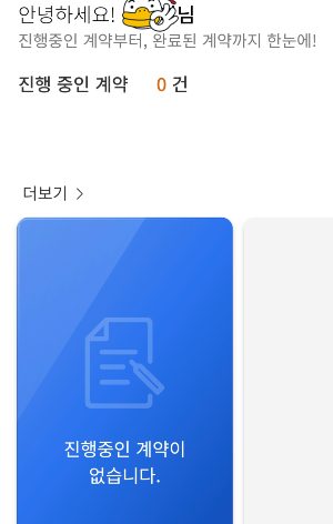 어제 진행할때는 1건 표시가 되었는데 오늘 다시 들어가니깐 진행중인 계약이 없다고 나오네요.