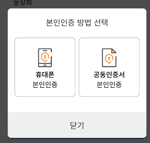-본인인증 방법(휴대폰인증, 공동인증서 인증)을 선택합니다.