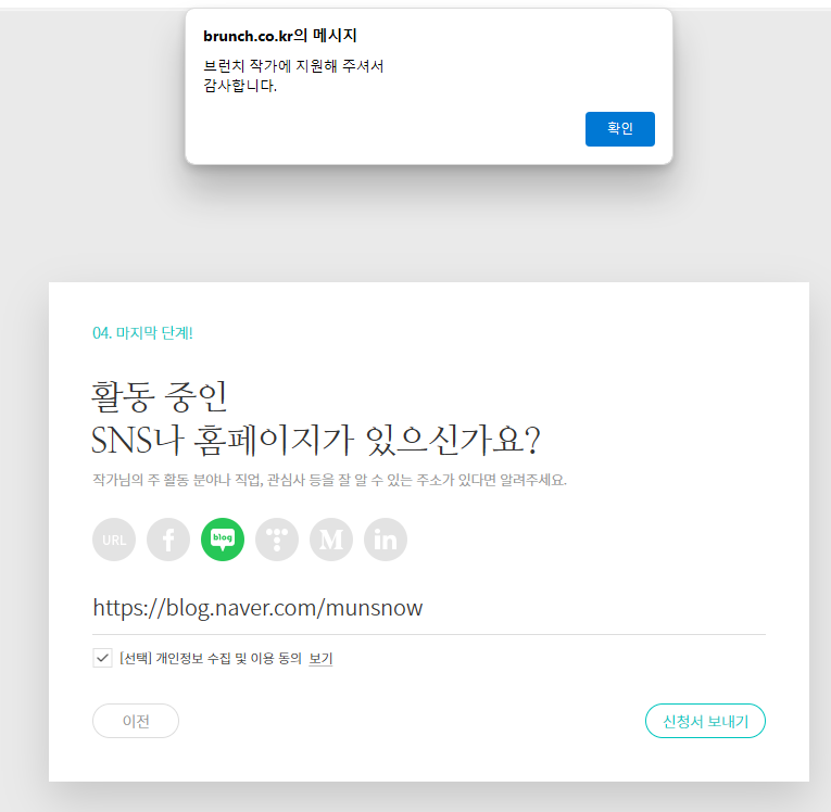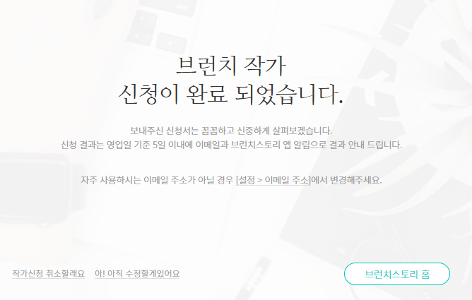 '브런치 작가에 지원해 주셔서 감사합니다'라는