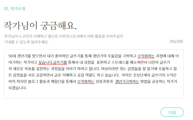 누구나 가입할 수는 있지만 콘텐츠를 발행하느 작가 활동을 시작하려면 '작가 신청'을 한 후 선별 승인을 통과해야 작가로 활동할 있는 공간입니다.