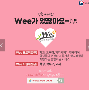 "wee 프로젝트"는 학교, 교육청, 지역사회가 연계하여 학생들의 건강하고 즐거운 학교생활을 지원하는 통합지원 서비스입니다.