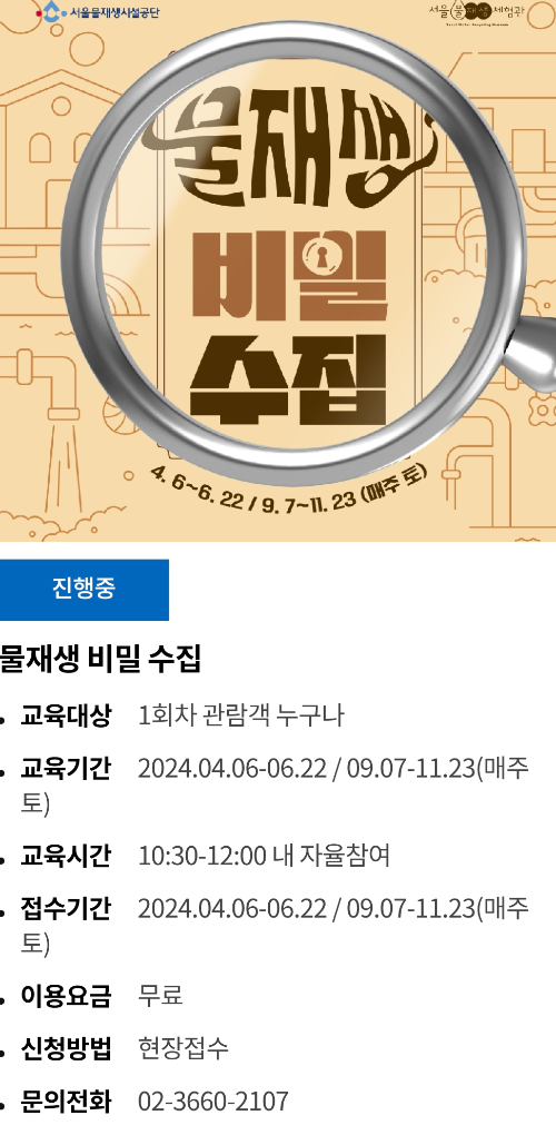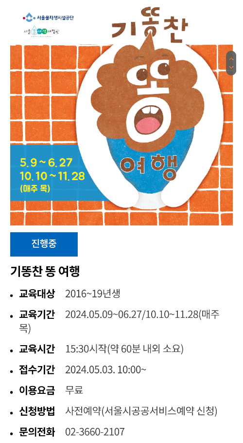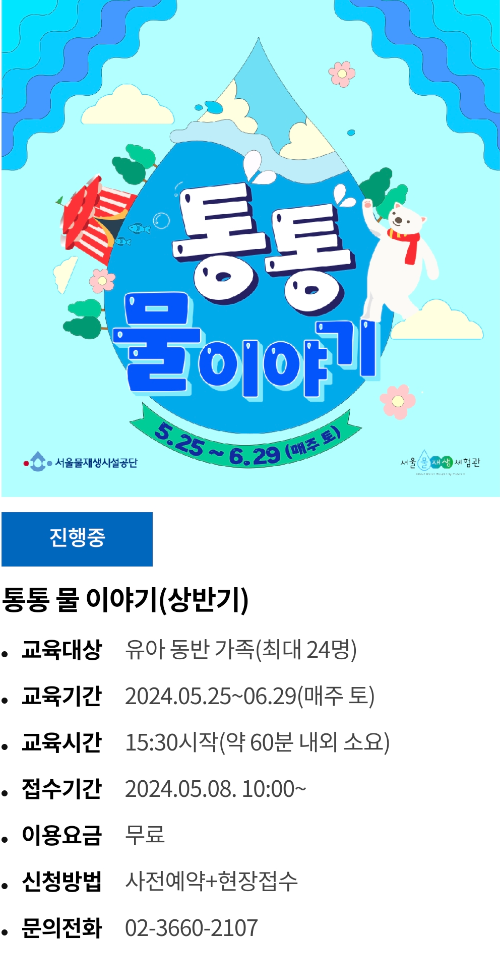 * 본 운영일정은 서울물재생체험관 사정에 따라 달라질수 있습니다.