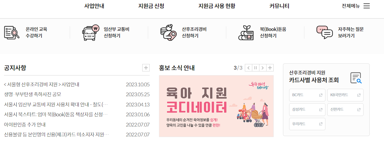 서울형 산모 산후조리 경비 신청방법