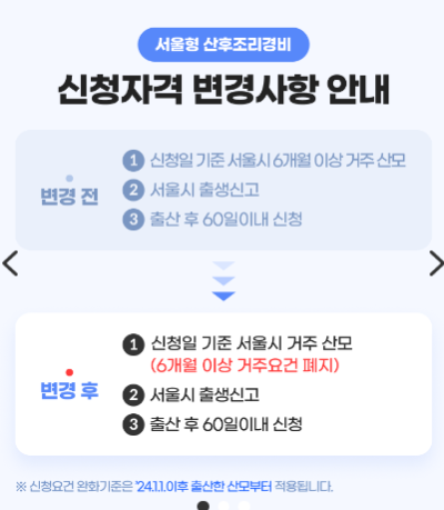 * 신청요건 완화기준은 24.1.1 이후 출산한 산모부터 적용됩니다.