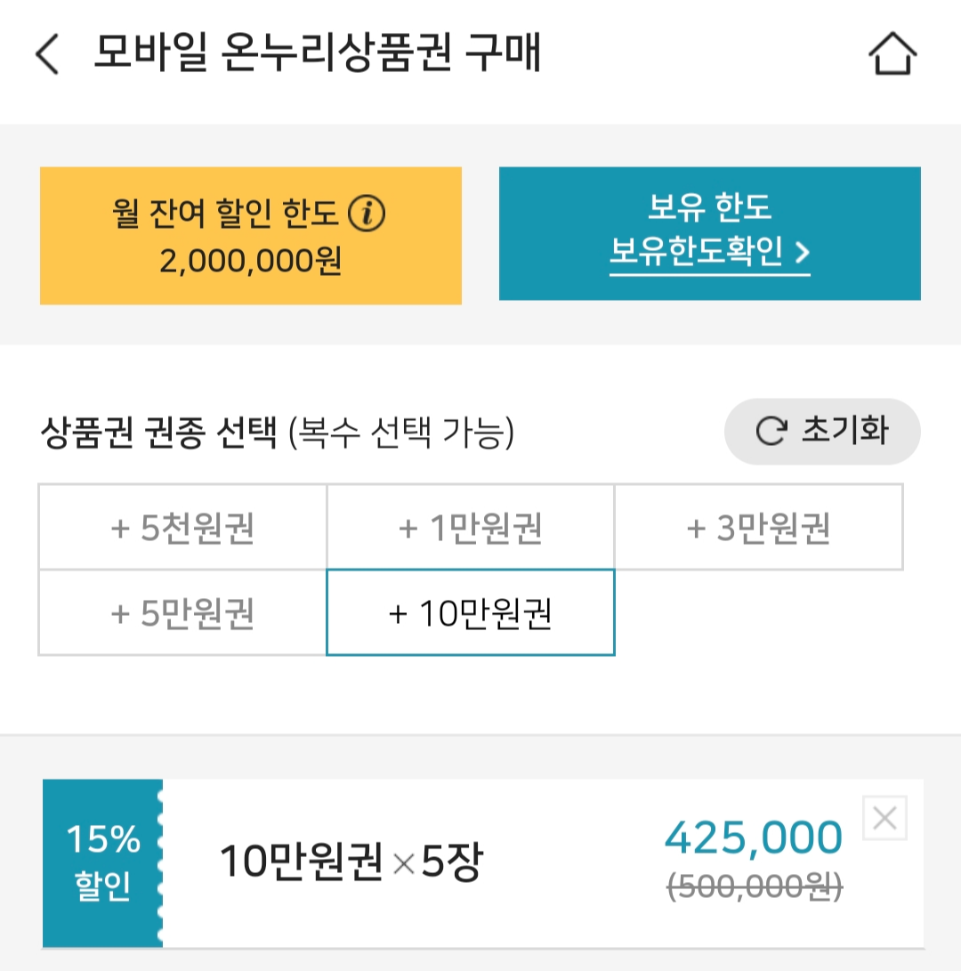 모바일 온누리상품권 15% 할인 구매 방법