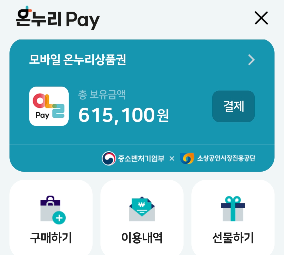 모바일 온누리상품권이 남아 있어서 총 615,100원이 되었네요~