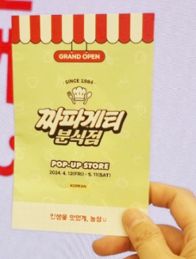 들어가기전에 짜파게티 분식점 팝업스토어 종이를 나눠 주시는데 미션 수행하고 도장을 꼭 받으셔야 합니다.