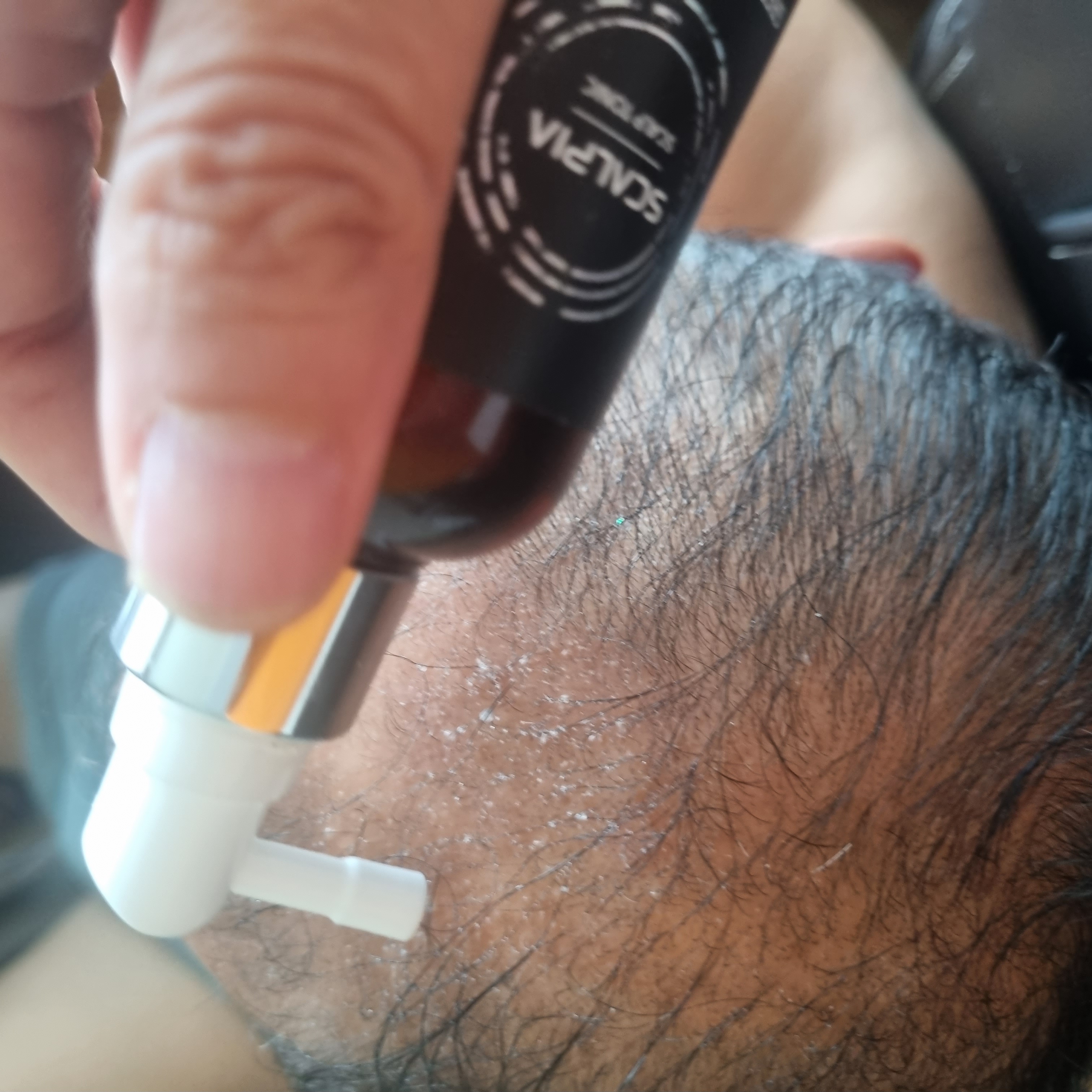 - 손끝이나 두피 마사지기로 부드럽게 마사지 후