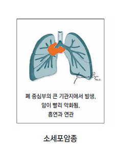 소세포암을 폐암의 종류의 하나로 비소세포폐암은 80~85%정도 나타나고 소세포폐암은 20~15%정도로 발생 빈도가 나타나고 있습니다.