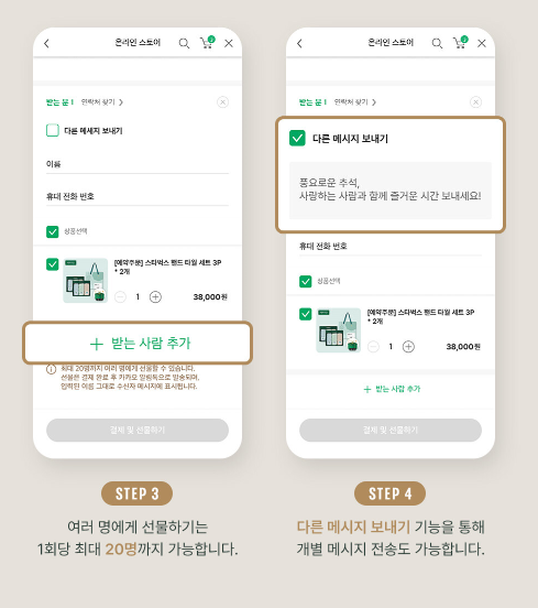 3단계 여러명에게 선물하는 1회당 최대 20명까지 가능합니다.