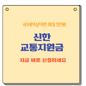 신한은행, 노인고객 신한 60+ 교통지원금 최대 5만원 지원혜택